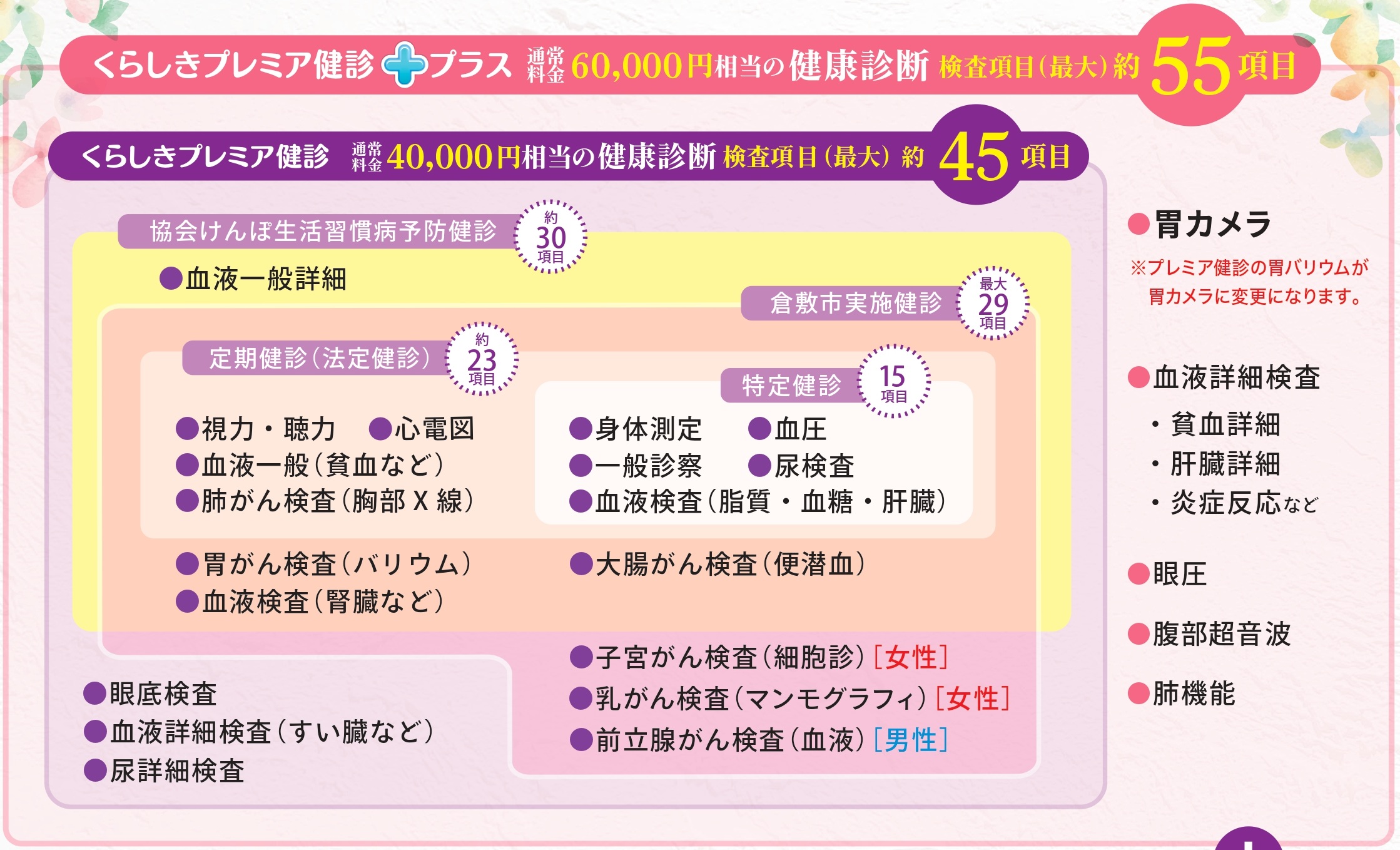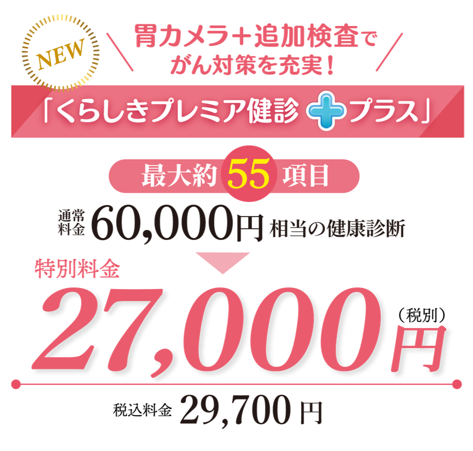 くらしきプレミア健診は、生活習慣病予防健診や定期健診の代わりにもなります。
